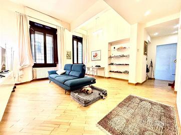LIBERTA'. Via XX Settembre. In palazzo d'epoca, vicino ad ogni tipo di servizio con affacci interni e silenziosi. L'appartamento si compone da un ingresso aperto sull'ampia sala, caratterizzata da due punti luce e dotata di armadio a muro. La cucina è abitabile. Le due camere affacciano entrambe sui giardini tergali, garantendo riservatezza e silenzio. I bagni sono due, entrambi completi. Due palchi morti, un ripostiglio ed una cantina/sottoscala posta al piano seminterrato del palazzo completano la proprietà. Terrazza panoramica e giardino condominiali. Riscaldamento autonomo, aria condizionata. Ottime condizioni di manutenzione. Per maggiori informazioni o per visionare l'immobile può contattarci allo mandarci una mail su fice2@tecnocasa.it o scriverci su whatsapp al