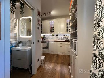 L'immobile,si sviluppa su due livelli: l'ingresso, valorizzato da un resede esclusivo, conduce al soggiorno con angolo cottura; sullo stesso livello troviamo un servizio igienico finestrato e, tramite portafinestra, l'accesso ad una piccola e funzionale corte privata.