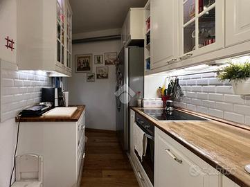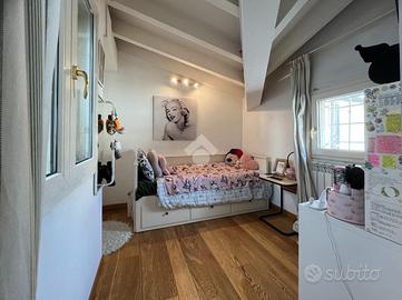 Completa la proprietà un ampio garage al piano terreno (A PARTE ACQUISTABILE AL PREZZO DI € 110.000), collegato internamente tramite scala, con ottimo spazio manovra ed in grado di ospitare due auto, oppure un'auto oltre moto e biciclette, mentre una parte è ideale da utilizzare come zona lavanderia.