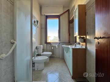 Completa la proprietà un bagno finestrato con doccia oltre a un comodo ripostiglio. Grazie alla posizione elevata, l'appartamento gode di ottima luminosità ed esposizione.
