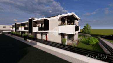 Nuova realizzazione, nella zona centrale di Flero, vicina a tutti i principali servizi. Il progetto prevede la realizzazione di un complesso residenziale formato da due ville singole con ampio giardino, quattro ville a schiera e un condominio disposti su due livelli di sole 8 unità. Gli appartamenti saranno trilocali e quadrilocali, entrambi con doppi servizi, giardini o terrazze di proprietà. Tutti gli appartamenti avranno un ampio box di pertinenza nel piano interrato. Le ville singole saranno sviluppate su due livelli, con box all'americana e zona giorno al piano terra, zona notte con 3 camere, doppi bagni e lavanderia al piano primo. Le ville a schiera si svilupperanno su due livelli con box e zona giorno al piano terra, giardini e corti private. La soluzione proposta ha accesso dal porticato frontale che ospita il portoncino blindato d'ingresso. L'accesso è diretto nell'ampia zona giorno, illuminata dalla scenografica parete vetrata sul fondo, mentre la cucina si sviluppa sulla parete opposta. Un bagno cieco di servizio completa la zona giorno. Il disimpegno conduce alle 3 camere, una matrimoniale una doppia e una singola, e all'ulteriore bagno della soluzione. Il piano interrato, raggiungibile dalla scala esterna coperta, ospita l'ampio box di pertinenza alla soluzione. Le soluzioni verranno costruite in elevato standard qualitativo in classe energetica A, con riscaldamento a pavimento con pompa di calore e ventilazione meccanica puntuale dei singoli ambienti. Ogni immobile verrà collegato ad un impianto da 3 kW di pannelli solari fotovoltaici. Il capitolato prevede inoltre l'istallazione di tapparelle elettriche, la posa di sanitari sospesi e le predisposizioni per impianto di raffrescamento e antifurto per le soluzioni in appartamento. Le ville verranno realizzate con impianto di riscaldamento e raffrescamento a pavimento e impianto di ventilazione meccanica e deumidificazione degli ambienti. L'acquisto in fase di progetto permette di personalizzare tra