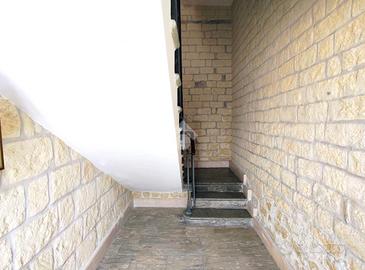 Presenta pavimentazione in marmo mosaico che si differenzia dal gres porcellanato presente nel bagno, quest'ultimo completamente ristrutturato, infissi in anticorodal con doppio vetro su tutti i punti luce, porte interne in legno, impianti da revisionare e due porte d'ingresso in legno.