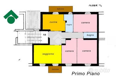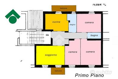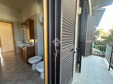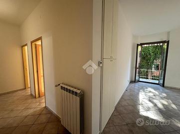 L' abitazione si compone di ingresso, soggiorno con balcone, cucina abitabile con balcone, due camere matrimoniali, una camera singola ed un bagno con vasca e con doccia.