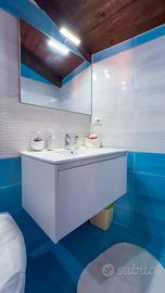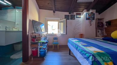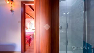 Sul medesimo livello troviamo inoltre una camera matrimoniale con bagno privato, completo di box doccia e finestra.
