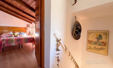Attraverso una scala interna situata nel soggiorno si accede al secondo piano, dove si apre la zona notte, composta da un disimpegno, due camere da letto, di cui una con bagno privato, e un ulteriore bagno a servizio del piano. Dal disimpegno si accede al secondo terrazzo vista mare, ideale per ammirare tramonti e momenti di tranquillità. Completa la proprietà un locale di pertinenza, utile come deposito o ambiente di servizio.