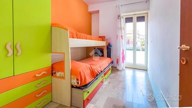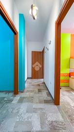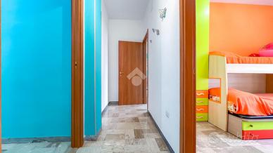 La zona notte offre due camere matrimoniali, una cameretta e due bagni, entrambi dotati di box doccia.