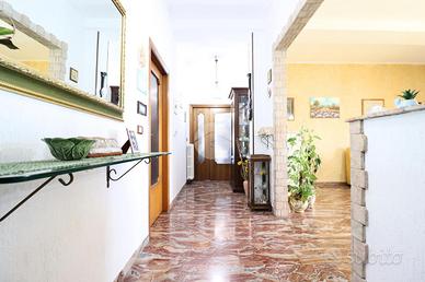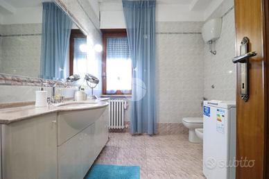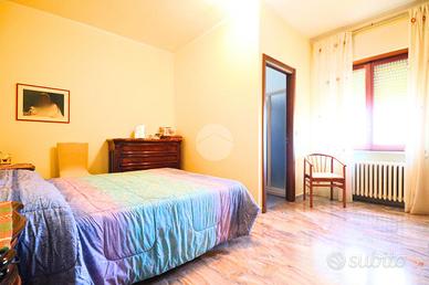 La zona notte ospita tre camere da letto, comode e ben distribuite: una dispone di bagno privato, mentre un secondo bagno, ampio e finestrato, serve le restanti stanze con praticità e comfort.