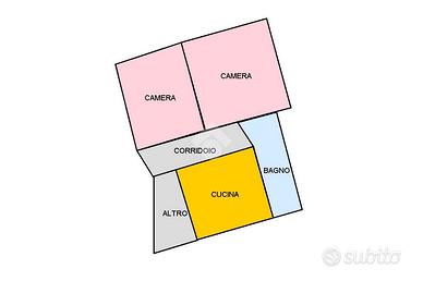 Il bagno è servito da box doccia, mentre la zona notte si compone di due camere da letto.