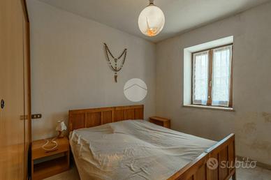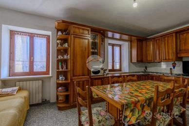 Posizionato al primo piano, l'appartamento si compone di un SOGGIORNO con CUCINA a vista e stufa, ideale per momenti di convivialità.