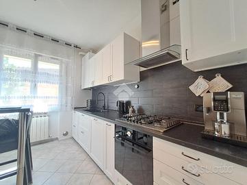 Al piano terra troviamo un grande garage di 40 mq con doppio portone di accesso e lo splendido giardino di oltre 100 mq ad uso esclusivo.