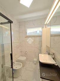 Il bagno è finestrato e ristrutturato con ottime finiture in stile ultramoderno.