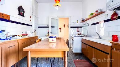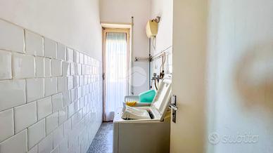 la cucina è separata dal soggiorno ed entrambe le stanze hanno uscita sul balcone, garantendo una buona luminosità durante tutto l'arco della giornata.
