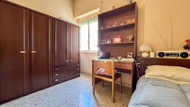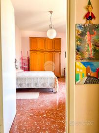 La zona notte è composta da tre camere da letto di cui: due camere matrimoniali di 23 mq e 17,5 mq, entrambe con uscita su un terrazzo profondo 1,80 m, e una camera singola di 10 mq. Presenti due bagni finestrati: uno con vasca e uno di servizio con accesso al balcone.