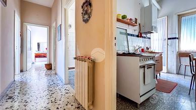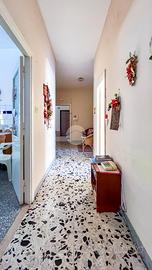 L'appartamento ha una superficie calpestabile interna di 110 mq. L'ingresso si apre su un ampio disimpegno,