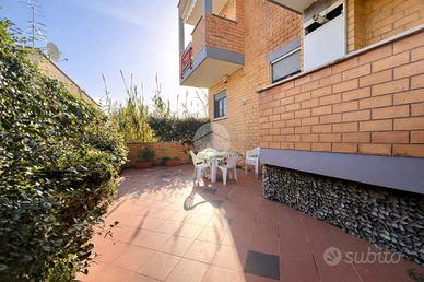 GAETA - VIA DEGLI OLMI Proponiamo in vendita un quadrilocale posto al piano rialzato in parco privato, con doppia corte esterna privata, posto auto, cantina e piacevole scorcio di mare. La soluzione ha una metratura di 90 mq interni calpestabili, con due corti esterne private per complessivi 98,7 mq, in contesto residenziale. La zona giorno è composta da un salone di 21 mq, ampio e luminoso con accesso alla prima corte esterna privata di 46 mq ed esposizione a sud- ovest, affiancato da una cucina abitabile di 12 mq, separata e ben organizzata, con accesso alla seconda corte esterna di 41 mq ed esposizione a nord- est. Un disimpegno conduce alla zona notte, composta da tre camere da letto: due camere matrimoniali di 14 mq ciascuna, una camera singola di 13,3 mq, con accesso diretto a una delle corti esterne, soluzione ideale come camera ragazzi, studio o stanza ospiti. Completano la soluzione due bagni, entrambi finestrati: un bagno principale con vasca di 6,2 mq, un secondo bagno con doccia di 4 mq, funzionale e ben dimensionato. Elemento distintivo dell'immobile sono le due corti esterne private, rispettivamente di 46 mq e 42 mq, che rappresentano un vero valore aggiunto: spazi versatili, ideali per pranzi all'aperto, area relax, zona giochi o per chi possiede animali domestici. L'appartamento è dotato di riscaldamento autonomo e si completa con cantina di pertinenza, utile come spazio di deposito e posto auto. Soluzione ideale per chi è alla ricerca di un'abitazione ampia, ben distribuita e con importanti spazi esterni, in una zona residenziale di Gaeta, senza rinunciare a comfort e funzionalità. L'immagine di copertina, generata con IA, rispecchia le caratteristiche del terrazzo e rappresenta un'ipotesi di arredo realizzata a fini puramente illustrativi. Passa a trovarci nella nostra agenzia TECNORETE a Gaeta, Corso Italia n. 28, oppure scrivici su WhatsApp al per fissare un appuntamento. Scopri quanto vale davvero il tuo immobile con la n