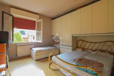 Proseguiamo verso la zona notte composta da due camere da letto matrimoniali, una camera da letto singola e un bagno finestrato con sanitari in ceramica e box doccia.