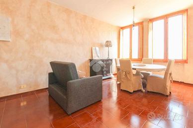 The solution is located on the second floor of a small condominium context, is developed on one floor, and enjoys both a lakefront view and a view of the historic centre.