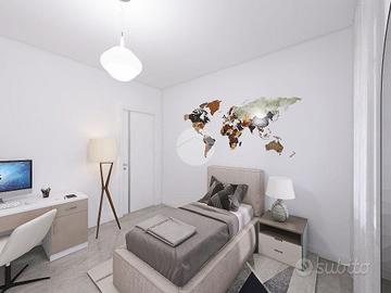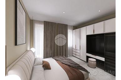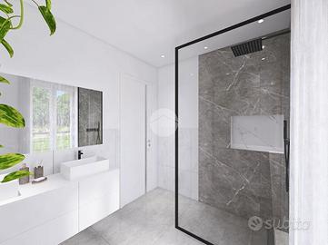L'immobile si sviluppa interamente su un unico livello e ha l'ingresso direttamente su un ampio soggiorno living che si affaccia sul balcone che circonda l'appartamento, offrendo una vista panoramica sulle colline circostanti. La zona notte è composta da due luminose camere da letto di cui una matrimoniale e due bagni, uno dei quali completo di doppio lavabo e di un ampio box doccia.