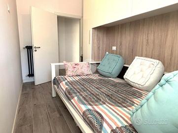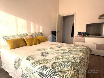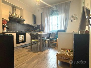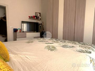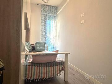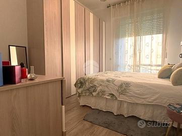 L'appartamento è situato al secondo piano di un piccolo condominio, senza ascensore ed è composto da un ingresso che ci conduce alla zona giorno dov'è presente il soggiorno con angolo cottura e da un disimpegno accediamo alla zona notte dove sono presenti tre camere da letto; due matrimoniali con balcone ed una singola. Bagno finestrato e dotato di box doccia.