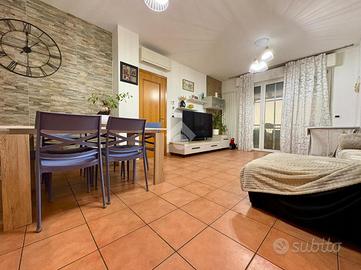 La soluzione è composta da un ingresso che ci porta ad un ampio soggiorno con accesso sul terrazzo, che offre la possibilità di poter godere di momenti all'aperto. E' presente la cucina separata, con accesso sempre al balcone, perfetta per chi ama cucinare e desidera uno spazio dedicato. Il bagno della zona giorno è finestrato e dotato di box doccia.