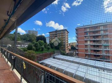 VIA NEGROPONTE In contesto residenziale chiuso da sbarra, ma allo stesso te,po comodo ai mezzi e servizi che il quartiere offre, proponiamo in vendita un appartamento di sei vani sito al quarto piano di un palazzo in buono stato dotato di ascensore. L'immobile è composto da ingresso, cucina abitabile, sala, due camere da letto, bagno finestrato e dispensa. L'appartamento possiede una lunga balconata che collega tutti i vani. L'immobile si presenta in buono stato complessivo. Il riscaldamento è centralizzato. Completa la proprietà una cantina sita nei fondi del palazzo e posto auto condominiale non assegnato.