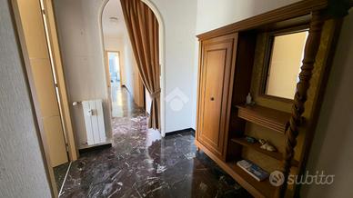Voltri. Via Voltri. Vicinissimo alla stazione del treno. A pochi minuti dal mare a piedi. Proponiamo sei vani al primo piano con ascensore composto da ingresso in corridoio, ampia cucina abitabile, soggiorno grande, camera matrimoniale con esposizione a sud, ulteriore camera singola e bagno con finestra. Ampia disponibilità di parcheggio. Dispensa. Balconata esposta a levante. Riscaldamento centralizzato. Comodissimo ai mezzi. Doppia esposizione.
