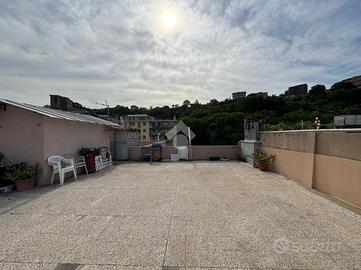 Via Rivarolo, ci troviamo tra il quartiere di Rivarolo e quello di Teglia, comodo a mezzi e servizi di ogni genere. In condominio ordinato nelle sue parti comuni, dotato di ascensore e di parcheggio condominiale, proponiamo in vendita appartamento sito al sesto ed ultimo piano fuori terra. Ci accoglie l'ingresso il quale ci conduce alla zona notte composta da una camera da letto matrimoniale dotata di portafinestra con sfogo sul balcone e da due camere da letto singole. La zona giorno è composta da cucina e soggiorno ed è dotata anch'essa di portafinestra con sfogo sul secondo balcone. I bagni sono due, uno dotato di vasca e doccia e l'altro di servizio. Completa la proprietà il terrazzo sovrastante di pari metratura dell'appartamento.