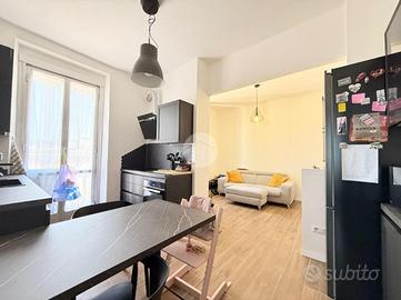 Grazie ad una recente e completa ristrutturazione l'alloggio si presenta in ottimo stato, con pavimentazione in gress porcellanato effetto legno in tutte le stanze eccetto il bagno, porta d'ingresso blindata, infissi doppio vetro in alluminio, condizionatore a pompa di calore caldo/freddo.