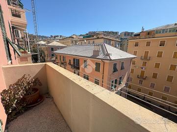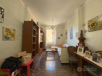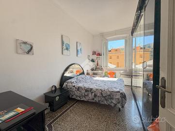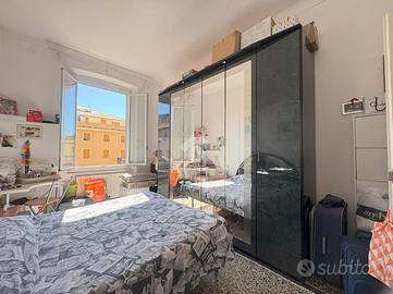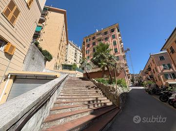 TEL. VIA ALBERTO E JESSIE MARIO - QUADRILOCALE IN BUONO STATO, LUMINOSO, CON 2 BALCONI Ci troviamo all'inizio di via Alberto e Jessie Mario, all'altezza circa delle piscine in via GB D'Albertis, una delle zone più richieste del quartiere poichè è defilata dal rumore del traffico, ma allo stesso tempo a pochi passi da tutti i servizi e le comodità. Proponiamo in vendita immobile sito al secondo piano di un palazzo in buono stato di manutenzione, dotato di ascensore, a cui attualmente questo appartamento NON ha l'allaccio. Per accedere al palazzo si passa attraverso una scalinata di circa 30 gradini. Lo stabile, inoltre, dispone di un'area condominiale per il parcheggio libero, non a rotazione L'appartamento si presenta in buono stato interno, molto luminoso e si compone di 6 vani vivibili. Entrando troviamo subito l'ampio soggiorno, proseguendo verso il corridoio incontriamo la cucina abitabile con accesso al primo balcone e la dispensa, dopodichè andando avanti nel disimpegno abbiamo le due camere da letto matrimoniali, di cui una con accesso al secondo balcone ed infine il bagno finestrato con box doccia. L'IMMOBILE E' ATTUALMENTE LOCATO Finestre in pvc con doppio vetro, riscaldamento autonomo e spese di gestione molto contenute. TEL.