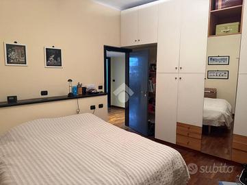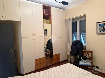La zona notte comprende due camere matrimoniali di generosa metratura: una esposta a est, completa di armadi su misura, e l'altra affacciata a ovest su Spianata Castelletto, impreziosita da una splendida boiserie. I due bagni, finemente rifiniti, offrono momenti di vero relax grazie alla vasca e alla doccia. Un pratico ripostiglio completa la distribuzione della casa.