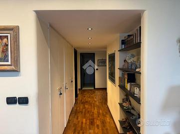Varcata la soglia, si viene accolti da un ampio ingresso finestrato, dotato di capienti armadiature su misura, che introduce a un luminosissimo soggiorno. La cucina, separata dal salotto da una raffinata vetrata che conferisce un effetto open space, è elegante e funzionale, ideale per chi ama dedicarsi alla cucina senza rinunciare alla convivialità. La tripla esposizione est-sud-ovest regala una vista suggestiva sui tetti della città e illumina tutti gli ambienti con luce naturale.