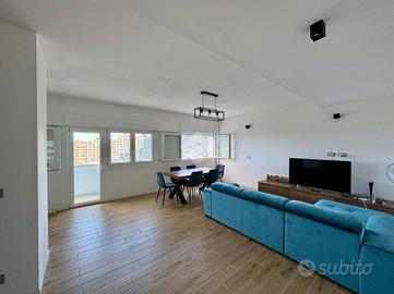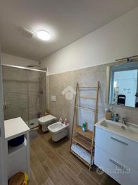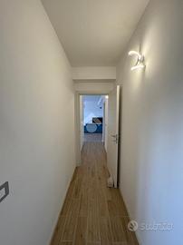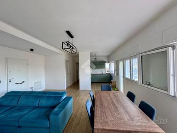 Ci accoglie l'ampia zona giorno composta da soggiorno e angolo cottura, dotata di tre finestre ed una portafinestra con sfogo sulla prima loggia. Il corridoio ci accompagna alla zona notte composta da due camere da letto matrimoniali. La prima è dotata di una finestra e di un'ampia cabina armadio e la seconda è dotata di due finestre più una portafinestra con sfogo sulla seconda loggia. I bagni sono due, il principale è dotato di un ampio box doccia mentre il secondo è un bagno di servizio con sanitari e zona lavanderia.