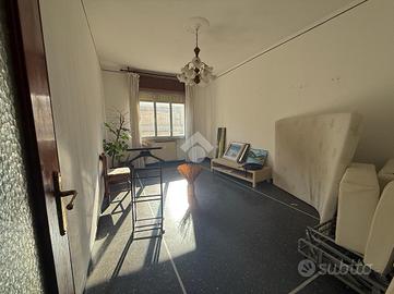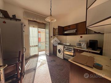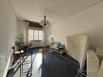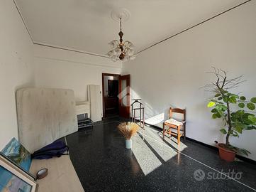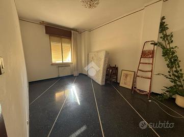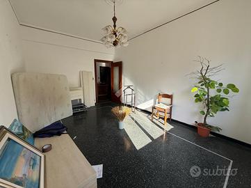 Voltri. Vicinanze Stazione ferroviaria. Via Ventimiglia. Proponiamo al sesto piano appartamento di circa 100 metri quadrati catastali, da ristrutturare, composto da ampio ingresso, cucina abitabile, soggiorno, due camere da letto, bagno con finestra e dispensa. Due balconi. Ottima posizione. Riscaldamento centralizzato. Doppio ascensore. Soleggiato. Cantina di proprietà. Molto comodo ai negozi ed ai primari servizi della delegazione.