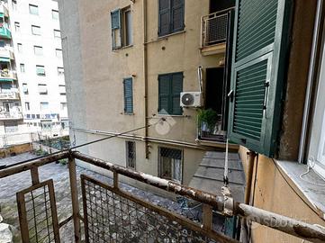 Nel cuore di Sampierdarena, a Genova, si propone in vendita un appartamento di 89 mq, situato al piano basso di un edificio storico del 1952.