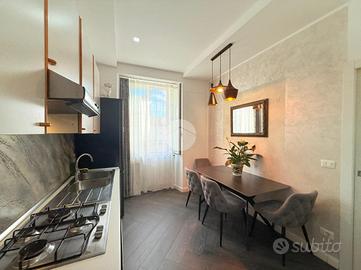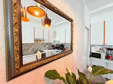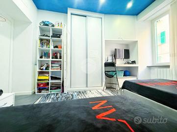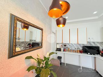 L'immobile è stato completamente ristrutturato nel 2022, offrendo un ambiente moderno e funzionale. L'ingresso si apre su un ampio soggiorno, ideale per momenti di relax e convivialità, reso caldo ed accogliente da un caminetto a bioetanolo nella parete tv e funzionale grazie ad un capiente armadio a muro. L'illuminazione della stanza comprende lampadario centrale, faretti a scomparsa e striscia led.