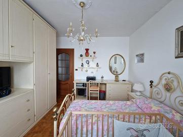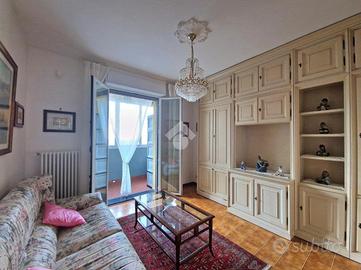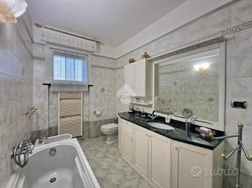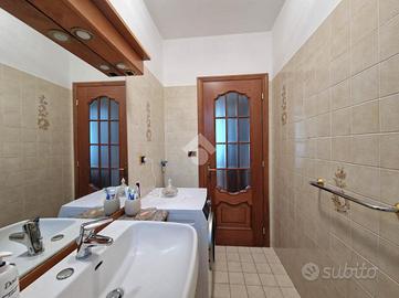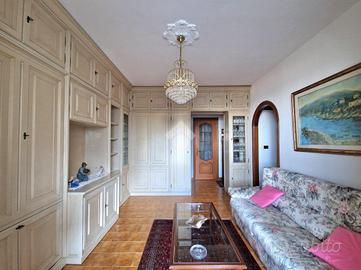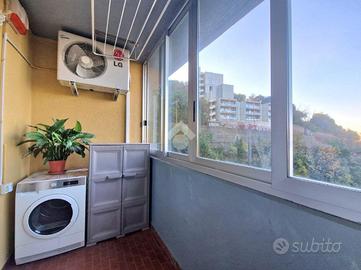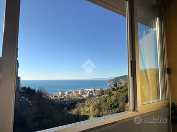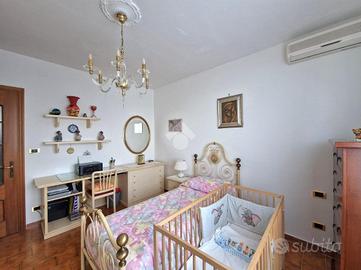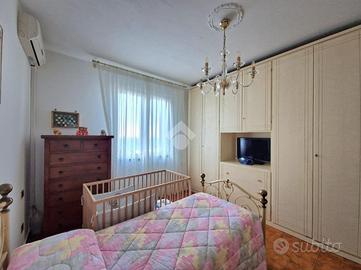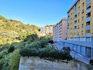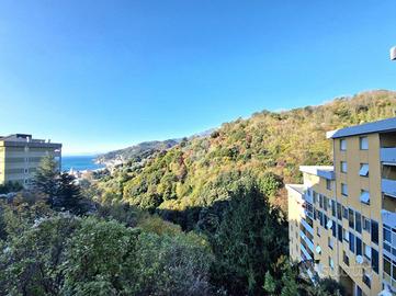 Voltri. Via Piero Calamandrei. Proponiamo appartamento di sei vani per totali 90 metri quadrati catastali composto da ingresso in corridoio, cucina abitabile, soggiorno, due camere da letto e doppi servizi. Piano alto con ascensore. Doppia esposizione nord/sud. Bellissima vista mare. Porta blindata e finestre con triplo vetro. Due balconi. Riscaldamento e condizionamento autonomo. Cantina al piano fondi di mq 12 raggiungibile con l'ascensore. Box auto di mq 12 nelle immediate vicinanze del portone. Ottimo stato.