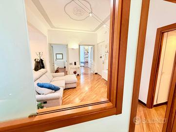 Via Casimiro Corradi: nel centro di Sestri Ponente, in zona pianeggiante e comoda ai servizi del quartiere, proponiamo in vendita un immobile di ampi 5 1/2 vani, situato in un palazzo dei primi del 900' con parti comuni in buono stato, posto al quarto e penultimo piano, dotato di ascensore.