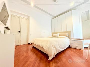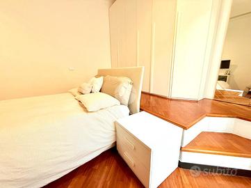 La zona notte si compone da due camere da letto, una singola ma di generosa metratutra e una camera matrimoniale con zona armadi rialzata e provvista di balcone con esposizione verso Est.