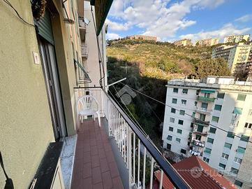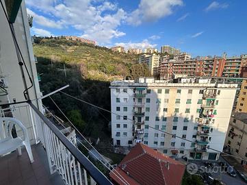 L'appartamento è composto da un ingresso che conduce al soggiorno, dove è possibile godere di momenti di relax e convivialità. Dal soggiorno si accede al primo dei due balconi, che affaccia sulla via, regalando un piacevole affaccio sulla zona circostante. La cucina abitabile è dotata di un secondo balcone, che offre una splendida vista su Marassi e sulla città, ideale per chi ama godersi un momento di tranquillità all'aperto.