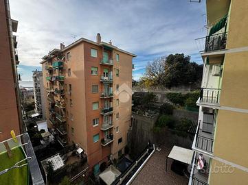 Nel cuore di Sampierdarena, a Genova, si propone in vendita un appartamento di 82 mq, situato in un palazzo le cui facciatee i balconi sono stati tutti ristrutturati tre anni fa.