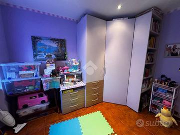 L'alloggio è composto da ingresso, ampio soggiorno, due camere da letto, ampio bagno dotato di vasca e cucina abitabile.