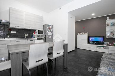 L'ingresso si apre su un comodo corridoio che distribuisce armoniosamente gli spazi interni. Subito sulla sinistra troviamo una prima camera da letto matrimoniale, proseguendo si accede alla zona giorno, un ambiente moderno e accogliente dove la cucina a vista si integra perfettamente con il soggiorno, creando uno spazio conviviale e dinamico. Da qui si accede a un terrazzo al piano, ideale per momenti di relax all'aperto o per pranzi e cene nella bella stagione.