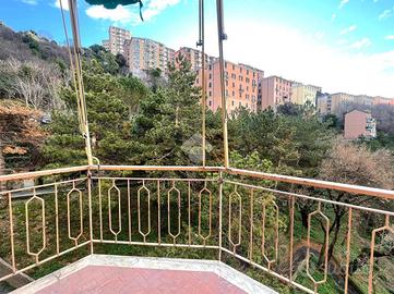 L'immobile è composto da tre camere, di cui una facilmente utilizzabile come salotto adiacente alla cucina,dispensa, bagno e due balconi.