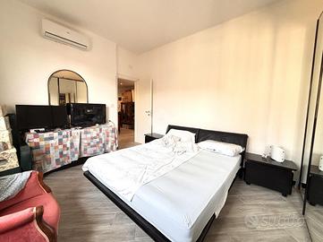 RISTRUTTURATO - COMODO AI MEZZI E SERVIZI - BUONA ESPOSIZIONE Elegante appartamento ristrutturato al 5° piano di un palazzo in ottimo stato, con ascensore. Composto da una spaziosa zona giorno open space con cucina e soggiorno, entrambi affacciati su una lunga balconata che offre luce naturale. L'immobile dispone di 2 camere da letto, un ampio bagno finestrato e un ripostiglio. Gli impianti nuovi, inclusi i condizionatori, infissi e la porta blindata garantiscono sicurezza e comfort. La proprietà è situata in una posizione comoda ai mezzi pubblici e ai principali servizi, il tutto in una zona tranquilla e ben servita.Ideale per chi cerca una soluzione pronta da abitare in un contesto sereno.