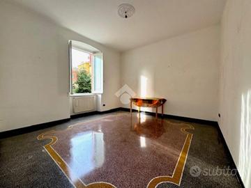 2) APPARTAMENTO 90 MQ al secondo piano così composto: ampio ingresso alla genovese, cucina abitabile, salone doppio molto luminoso, camera da letto matrimoniale, bagno con vasca e comoda dispensa in corridoio. Questo immobile può essere locato anche arredato.