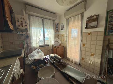 Voltri. Inizio Via Pietra LIgure. Proponiamo al quarto piano appartamento di sei ampi vani composto da ingresso, cucina e soggiorno con accesso alla splendida loggia vivibile con totale vista mare, camera matrimoniale grande, seconda camera, bagno con vasca e dispensa. Riscaldamento centralizzato. Cantina di proprietà al piano del portone di ottima metratura e molto asciutta. Vista apertissima. Palazzo in ottime condizioni. Posto auto condominiale assegnato (a rotazione).