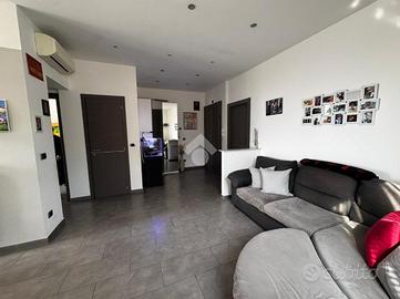 La disposizione interna comprende ingresso aperto nella zona giorno con soggiorno aperto sulla cucina dove si accede al balcone, dispensa, bagno dotato di box doccia e due camere da letto.