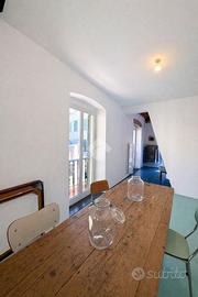 Vico Delle Fate - In pieno Centro Città, proponiamo in vendita Luminoso appartamento di 85Mq, tripla esposizione, con splendido terrazzo di 15Mq con vista panoramica sui tetti del Centro Storico di Genova. L'ingresso è direttamente in un ampia e luminosa zona living, attualmete composta da un unico grande open space di circa 60Mq, dove vi è la possibilità di ricreare una zona Sala/cucina ad angolo e creare una seconda camera da letto. La cucina attualmente è vivibile con travi a vista. Dalla zona giono possiamo accedere direttamente ad uno dei terrazzi più belli di tutta Genova, con una vista panoramica su tutta la città. La zona notte è composta da un'ampia camera da letto matrimoniale con doppi infissi ad angolo, i quali rendono la camera molto luminosa, con splendido tetto ristrutturato a vista. Il bagno è finestrato con box doccia. Attualmente In tutta la casa il pavimento è in resina bicomponente colorata, ma con la possibilità di posare un nuovo pavimento, avendo già lasciato lo spazio di circa 2cm con le finestre ed il portone. Il riscaldamento è autonomo. L'immobile avendo avuto un passato come museo d'esposizione d'arte 'Parc Grill' , non è solo uno spazio abitativo ma un ambiente che nel tempo a conservato un'identita e anima distintiva. Il contesto nella quale è situato è in una delle zone più belle del centro storico di Genova.