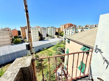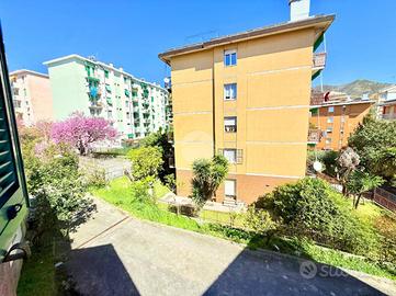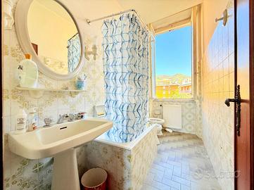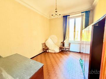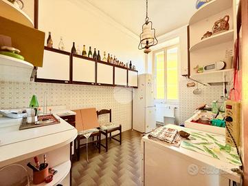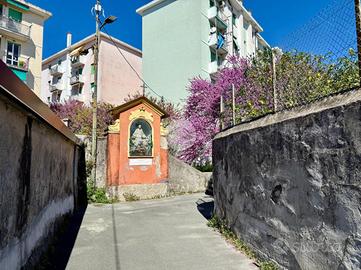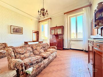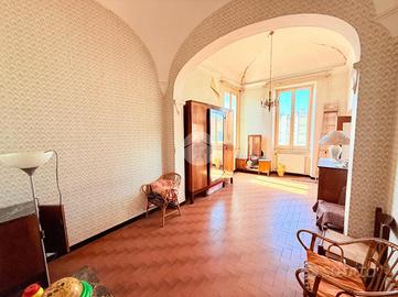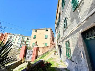 Via Adele Farreggiana, sulle prime alture di Sestri Ponente, si propone in vendita un appartamento situato in una posizione strategica in quanto consente di godere della tranquillità del quartiere, pur essendo a breve distanza dai principali servizi e collegamenti. E' posto al secondo ed ultimo piano di un edificio storico con parti comuni in discreto stato, risalente al 1900. Disposto su una superficie di 108 mq, l'immobile offre ampi spazi ben distribuiti; apre sul soggiorno padronale con doppia finestra che espone verso Ovest, ospita una cucina abitabile e un bagno finestrato con box doccia. La zona notte comprende due camere da letto, una singola, mentre quella matrimoniale è provvista di due finestre ed è di notevole metratura. Internamente si presenta da ristruturare.