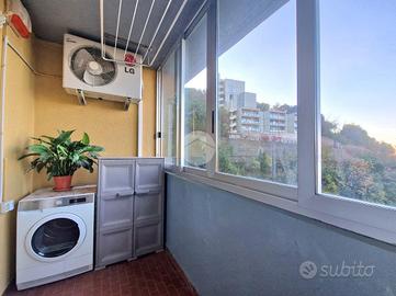 Genova - Prime alture di Voltri. Proponiamo un appartamento di 92 mq situato all'ultimo piano di un edificio costruito nei primi anni 80 e dotato di ascensore. L'immobile si distingue per la sua disposizione funzionale e gli spazi generosi. L'ingresso si apre su un ampio soggiorno, che conduce a una loggia vivibile con vista mare, ideale per momenti di relax. La cucina abitabile, si affaccia su un balcone verandato, perfetto da utizizzare come spazio aggiuntivo. La proprietà comprende, inoltre, due camere da letto, entrambe matrimoniali, doppi servizi che garantiscono comodità per tutta la famiglia, ed una dispensa. La cantina, di ampia metratura, si trova al piano fondi del caseggiato. Piazzola condominiale di uso comune adibita a parcheggio. Il box auto è compreso nel prezzo e vi è la possibilità di acquistarne un altro, entrambi nelle immediate vicinanze del portone di accesso al condominio. Il riscaldamento è termoautonomo. Condizionatori a pompa di calore caldo / freddo nelle due camere da letto. Porta blindata e infissi in triplo taglio termico. Questa soluzione abitativa rappresenta un'opportunità per chi cerca un ambiente accogliente e ben collegato, in zona tranquilla, con tutti i vantaggi di vivere all'ultimo piano.